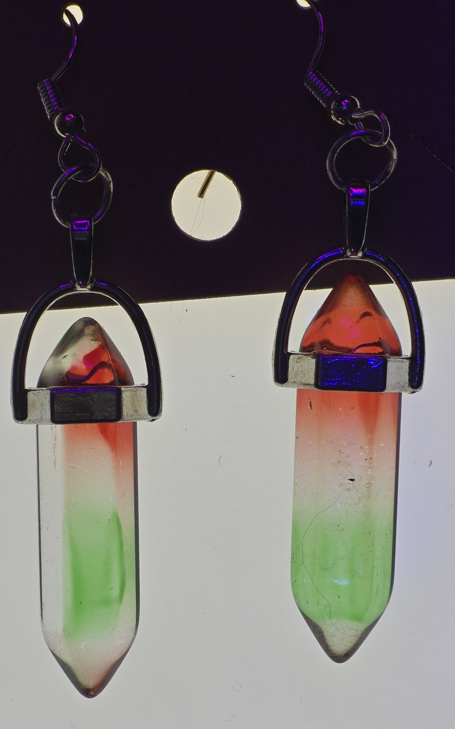 Dual-tone quartz/glass featuring a red core transitioning to a green base (Watermelon Tourmaline style).