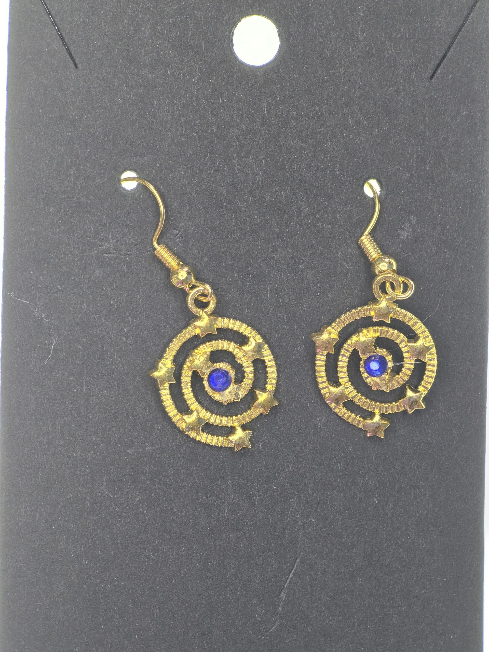 Gold spiral galaxy with blue gem. Premium aesthetic.