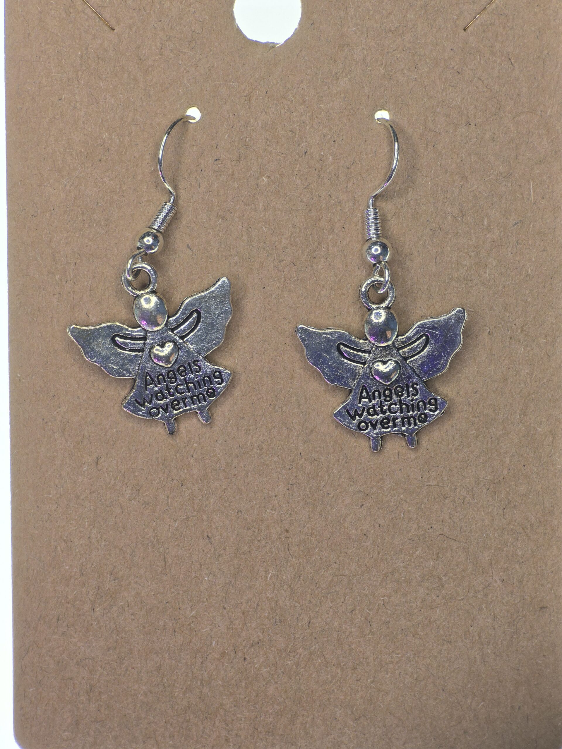 Silver-tone angel casting inscribed with ‘Angels watching over me’.