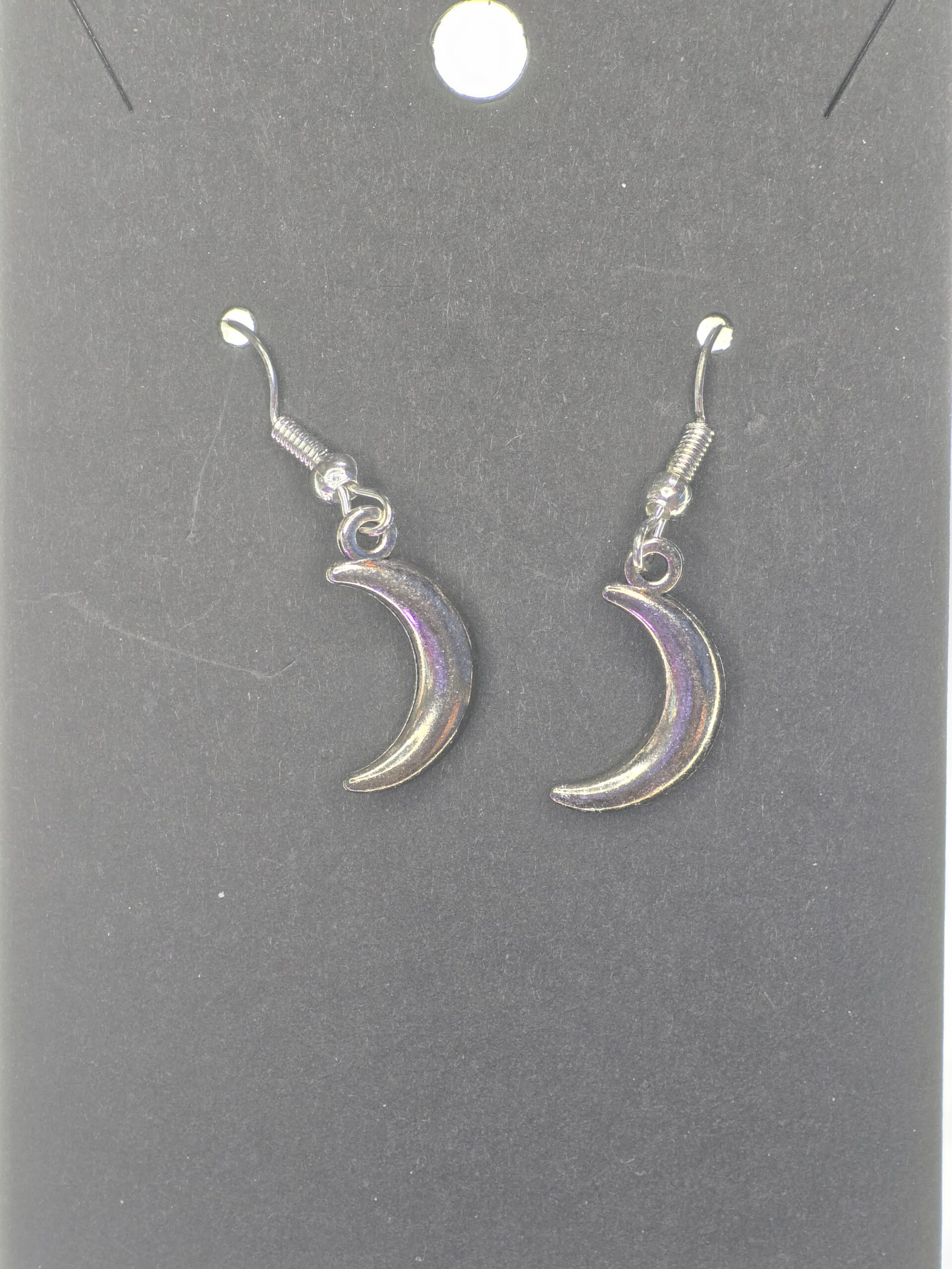 Small, smooth silver crescent moon charm.