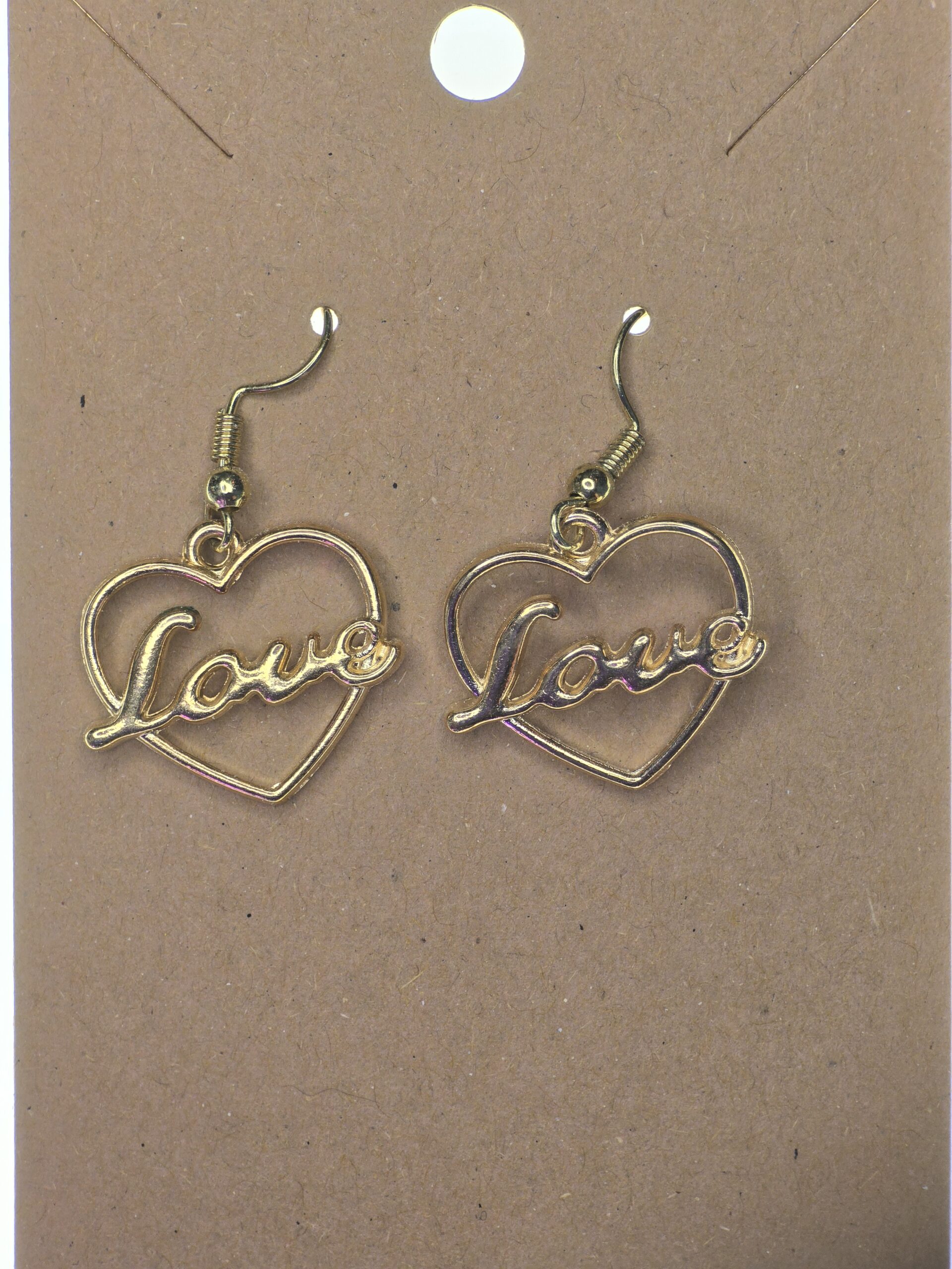 Gold-tone heart frame containing the word ‘Love’ in script.