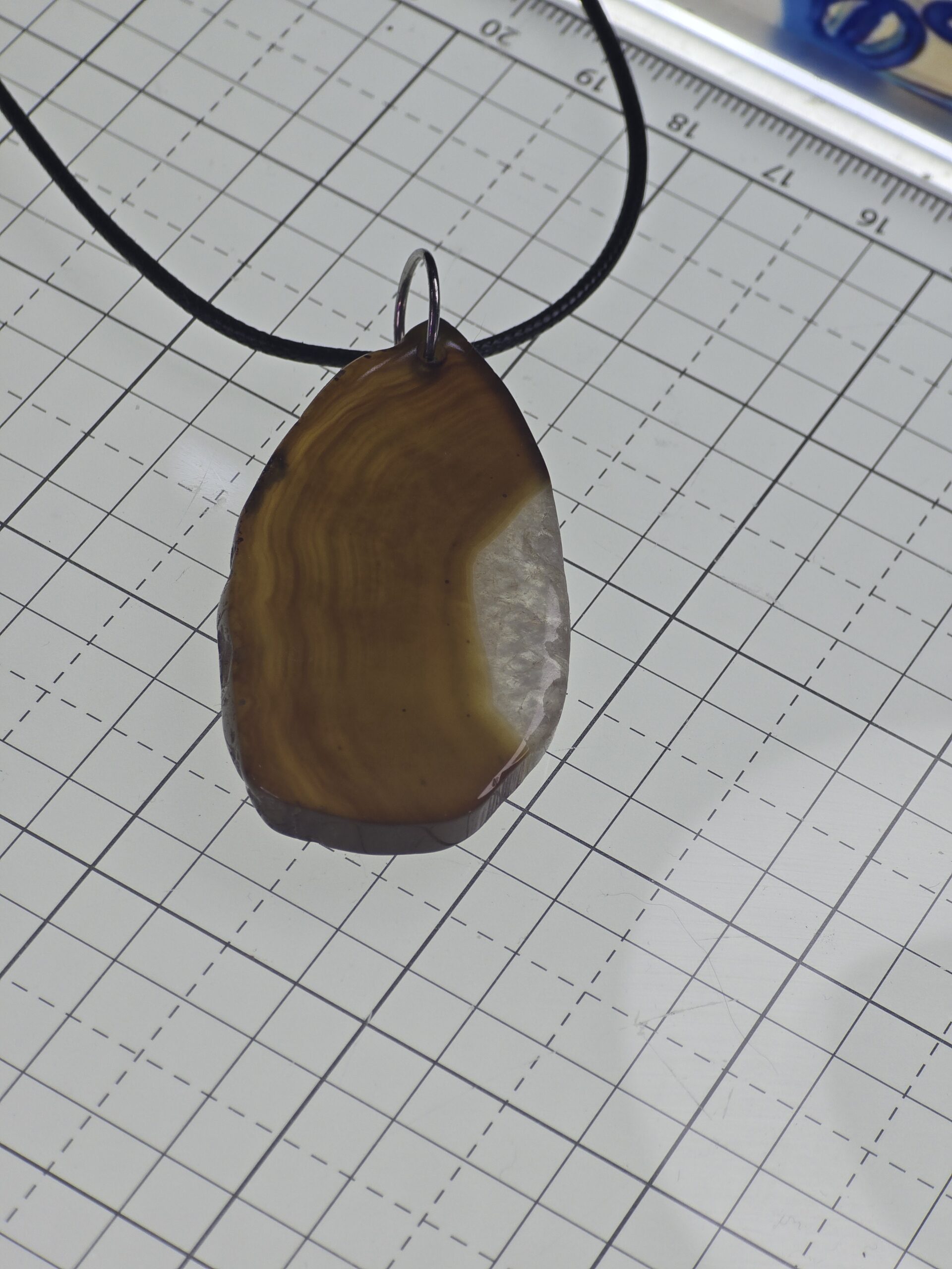 A warm, earth-toned agate slice featuring wood-grain banding and a raw crystalline edge. Grounding and structural. Unique Item.