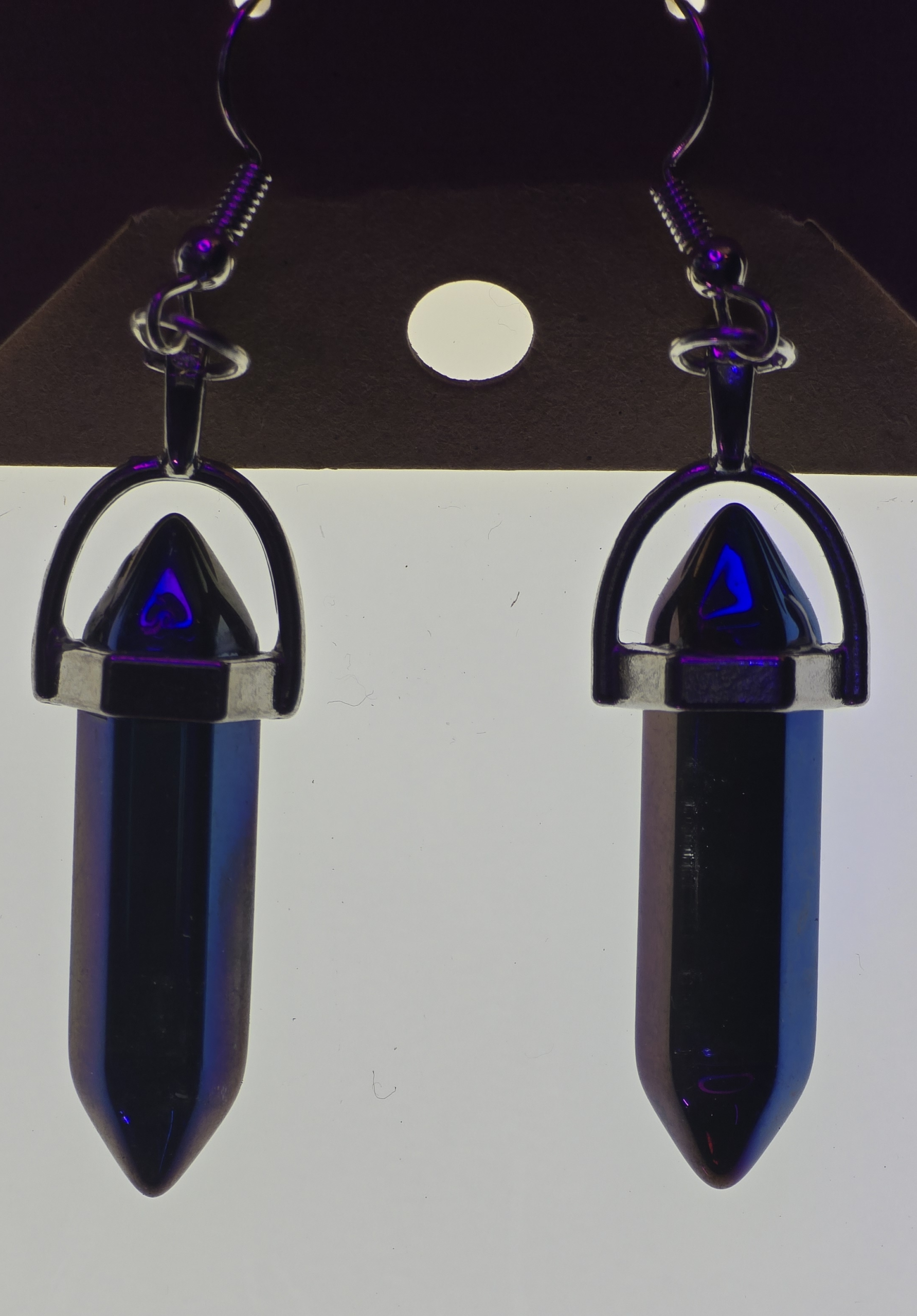 Appears near-black in standard light, revealing a deep spectral violet edge when backlit.